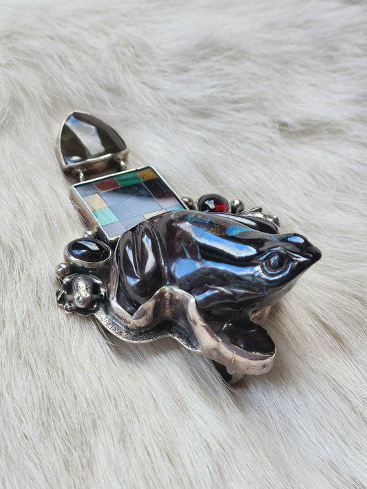 Carved Boulder Opal Frog Pendant/Pin