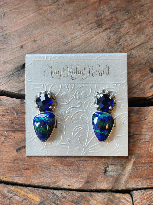 Malachite Azurite Quartz Earrings