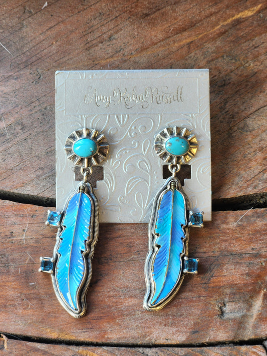 Enamel Feather Turquoise Earrings
